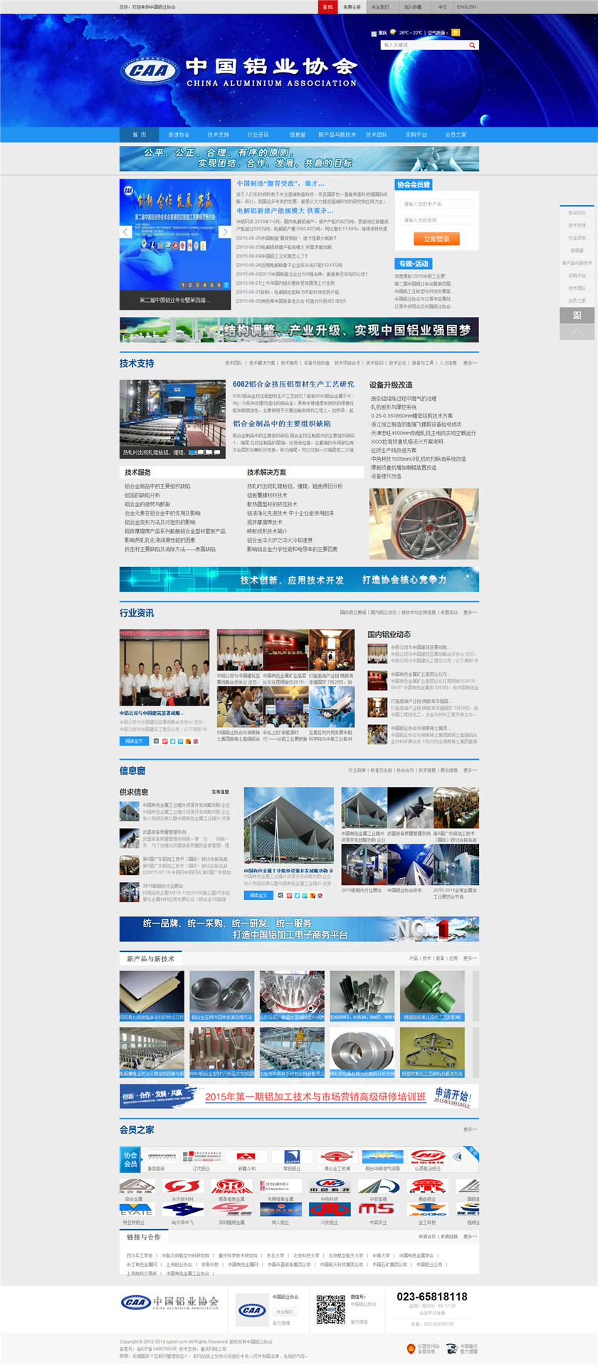 Project Description 中国铝业协会是由中国国内主要从事铝合金铸造、板、带、箔、管、棒、型材、锻件等企业组成的行业协会组织,协会由国内具有一定规模和影响力的企业发起,已有三百多家会员企业,目前还有很多企业踊跃希望加入,协会现有会员企业年销售额1000多亿元人民币,协会会员企业分布在国内华东、华南、西南、环渤海、东北、胶东半岛等中国经济活跃地区;产品涵盖航空航天、兵器装... Official website address 鸡西http://www.caa2014.com I want to share